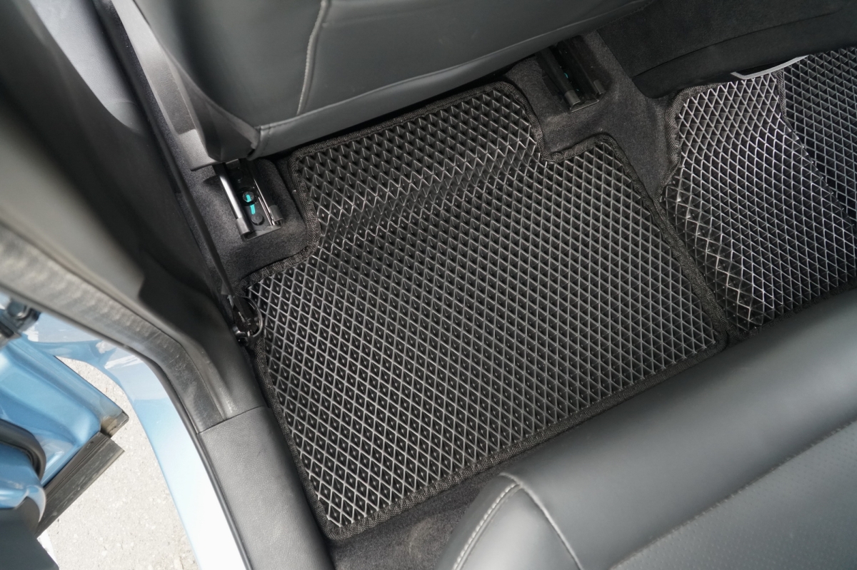 Толщина ковриков EVA составляет 10-12 мм. Глубина ячеек 7-8 мм. Такая толщина ковриков позволяет им служить довольно долго, не протираясь до 3 лет. А благодаря такой глубине ячеек коврик EVA площадью 1 кв.м. способен захватить около 3,5 л жидкости, сохраняя в чистоте вашу обувь и обивку салона.