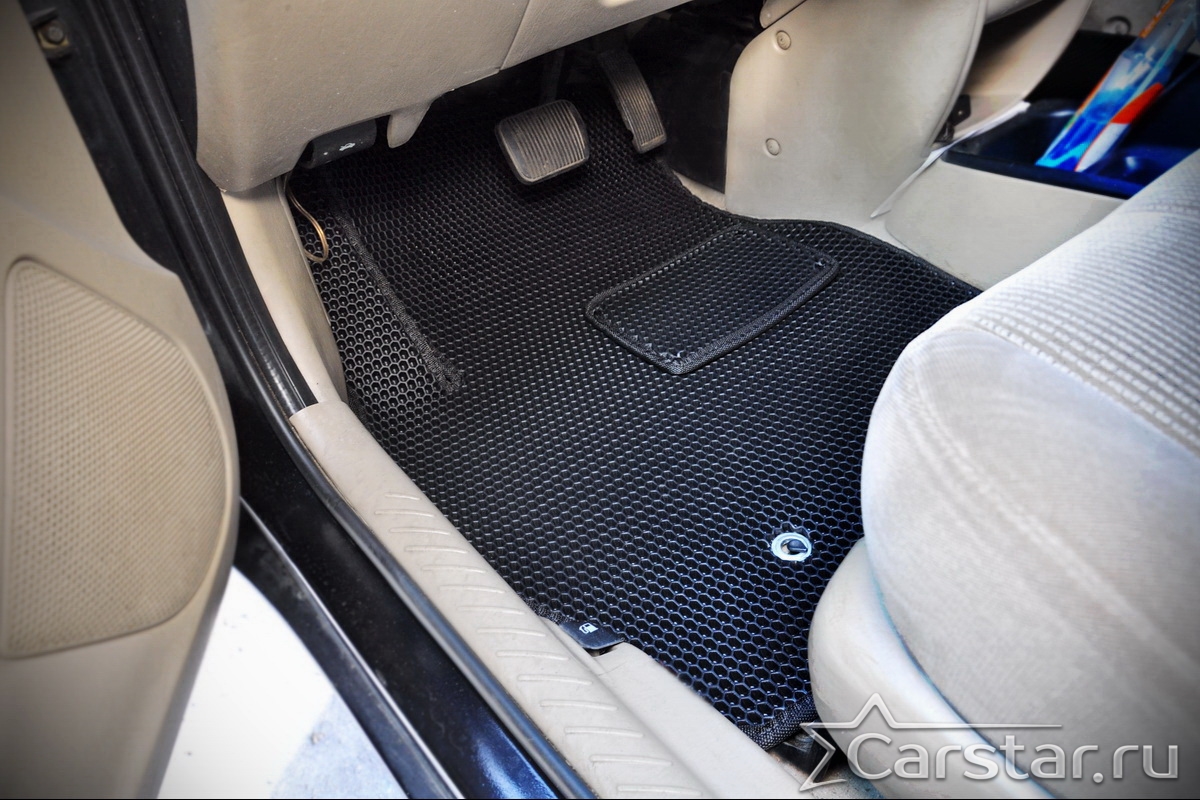 Толщина ковриков EVA составляет 10-12 мм. Глубина ячеек 7-8 мм. Такая толщина ковриков позволяет им служить довольно долго, не протираясь до 3 лет. А благодаря такой глубине ячеек коврик EVA площадью 1 кв.м. способен захватить около 3,5 л жидкости, сохраняя в чистоте вашу обувь и обивку салона.