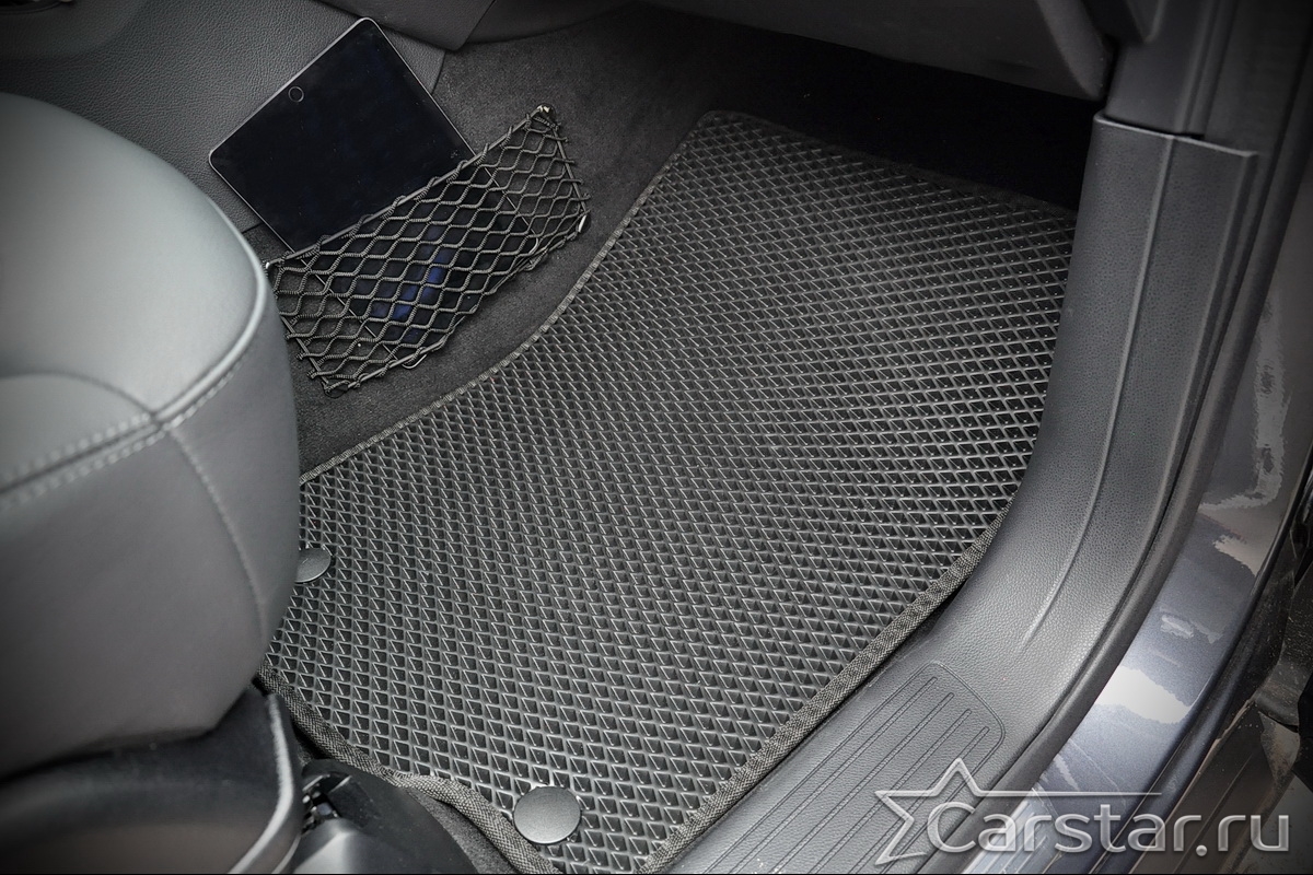 Коврики EVA надёжно крепятся с помощью оригинальных систем фиксации. Благодаря клипсам и липучке коврики защищены от смещений, что обеспечивает комфорт и безопасность вождения. Максимальное удобство также достигается точными, улучшенными лекалами для каждого автомобиля.