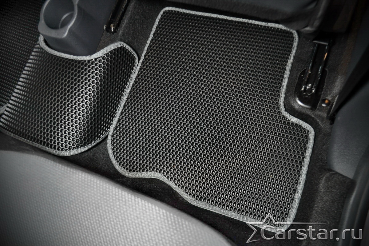 Автомобильные коврики EVA прекрасно подходят для всех существующих марок и моделей авто, здесь вы сможете заказать оптимальный аксессуар любого возможного цвета. По размерам они больше, чем стандартные резиновые коврики, поэтому покрывают максимальную площадь пола в салоне. А двойная система креплений (клипсы и липучки) позволяет надежно зафиксировать коврики в нужном месте.