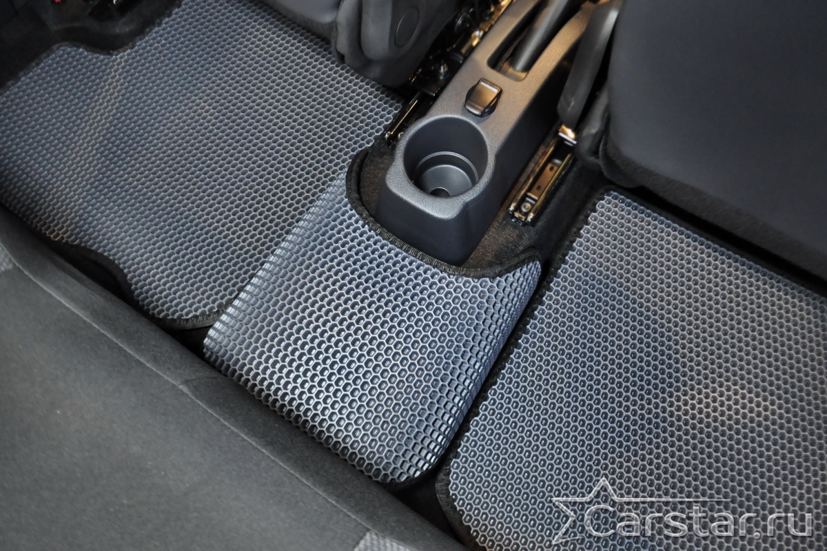 Толщина ковриков EVA составляет 10-12 мм. Глубина ячеек 7-8 мм. Такая толщина ковриков позволяет им служить довольно долго, не протираясь до 3 лет. А благодаря такой глубине ячеек коврик EVA площадью 1 кв.м. способен захватить около 3,5 л жидкости, сохраняя в чистоте вашу обувь и обивку салона.