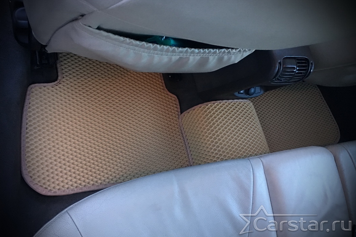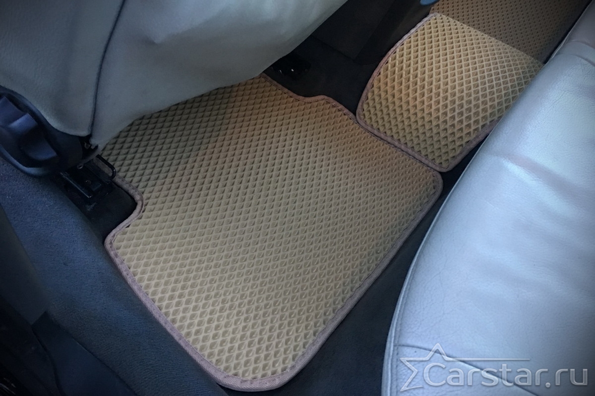 Толщина ковриков EVA составляет 10-12 мм. Глубина ячеек 7-8 мм. Такая толщина ковриков позволяет им служить довольно долго, не протираясь до 3 лет. А благодаря такой глубине ячеек коврик EVA площадью 1 кв.м. способен захватить около 3,5 л жидкости, сохраняя в чистоте вашу обувь и обивку салона.