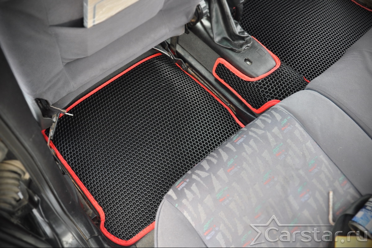 Толщина ковриков EVA составляет 10-12 мм. Глубина ячеек 7-8 мм. Такая толщина ковриков позволяет им служить довольно долго, не протираясь до 3 лет. А благодаря такой глубине ячеек коврик EVA площадью 1 кв.м. способен захватить около 3,5 л жидкости, сохраняя в чистоте вашу обувь и обивку салона.