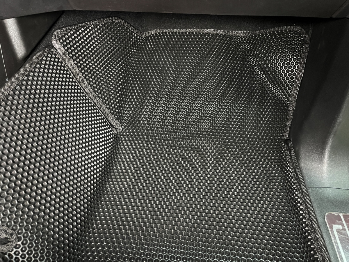 Толщина ковриков EVA составляет 10-12 мм. Глубина ячеек 7-8 мм. Такая толщина ковриков позволяет им служить довольно долго, не протираясь до 3 лет. А благодаря такой глубине ячеек коврик EVA площадью 1 кв.м. способен захватить около 3,5 л жидкости, сохраняя в чистоте вашу обувь и обивку салона.