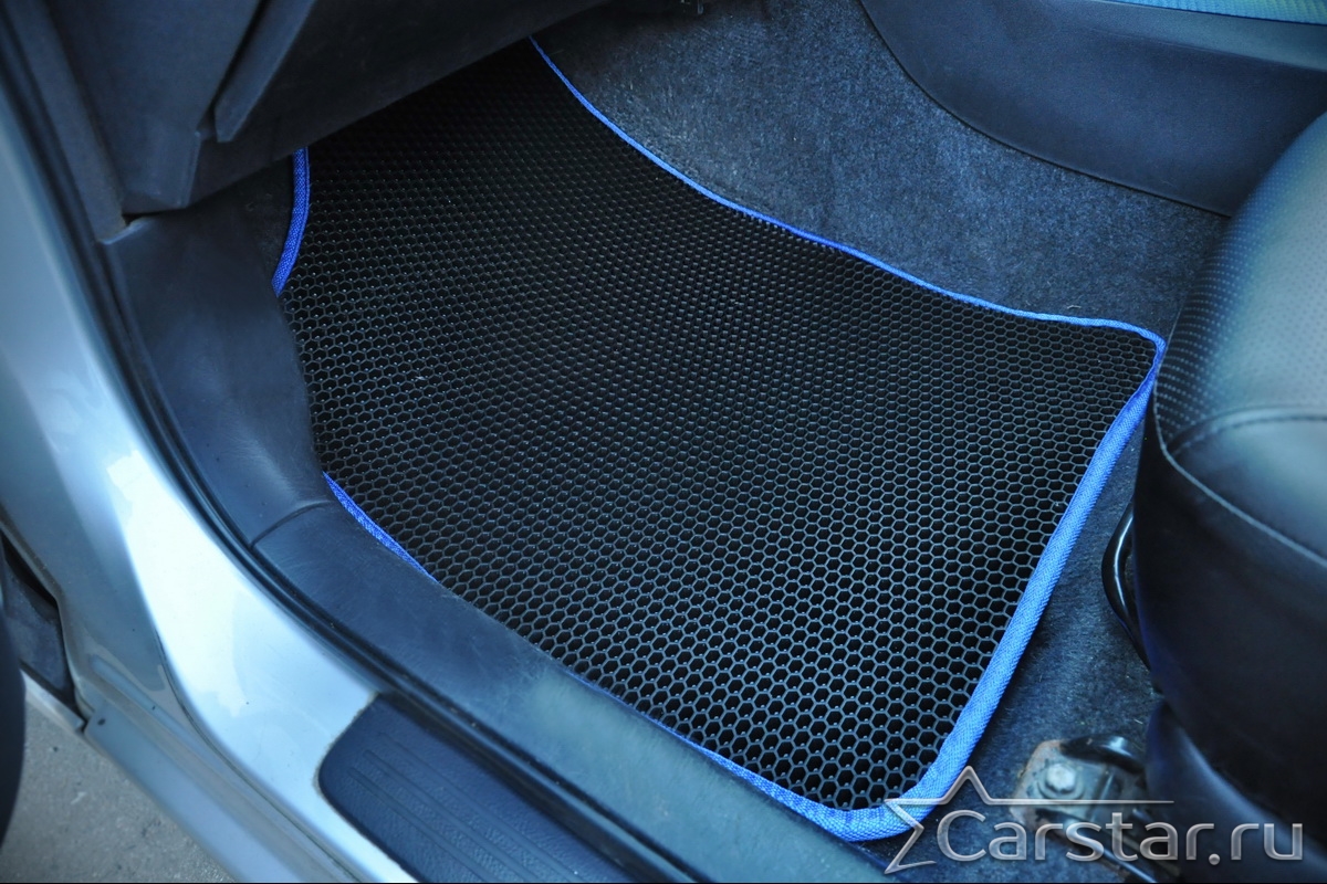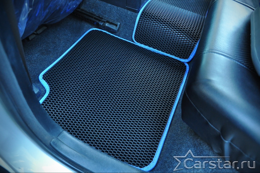 Толщина ковриков EVA составляет 10-12 мм. Глубина ячеек 7-8 мм. Такая толщина ковриков позволяет им служить довольно долго, не протираясь до 3 лет. А благодаря такой глубине ячеек коврик EVA площадью 1 кв.м. способен захватить около 3,5 л жидкости, сохраняя в чистоте вашу обувь и обивку салона.