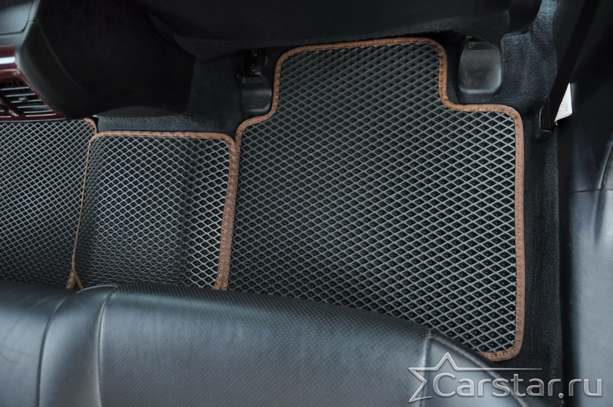 Толщина ковриков EVA составляет 10-12 мм. Глубина ячеек 7-8 мм. Такая толщина ковриков позволяет им служить довольно долго, не протираясь до 3 лет. А благодаря такой глубине ячеек коврик EVA площадью 1 кв.м. способен захватить около 3,5 л жидкости, сохраняя в чистоте вашу обувь и обивку салона.