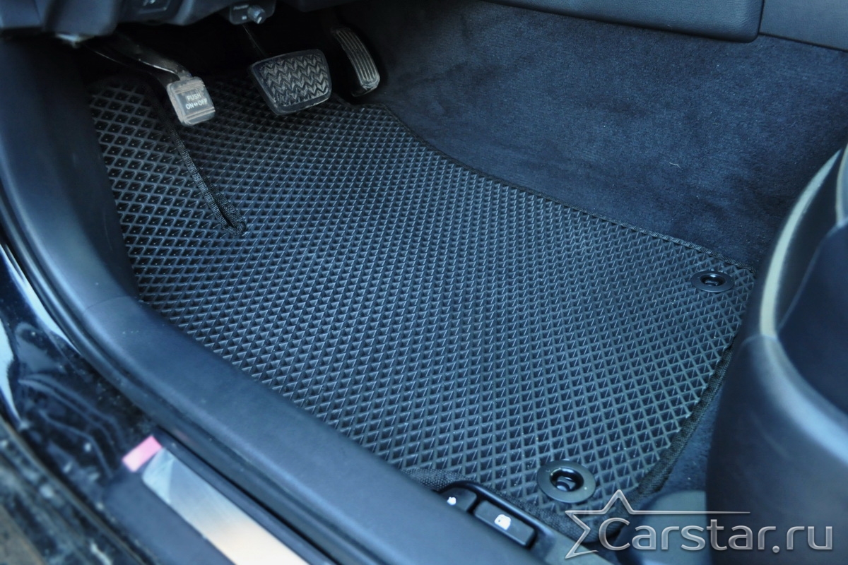 Автомобильные коврики EVA прекрасно подходят для всех существующих марок и моделей авто, здесь вы сможете заказать оптимальный аксессуар любого возможного цвета. По размерам они больше, чем стандартные резиновые коврики, поэтому покрывают максимальную площадь пола в салоне. А двойная система креплений (клипсы и липучки) позволяет надежно зафиксировать коврики в нужном месте.