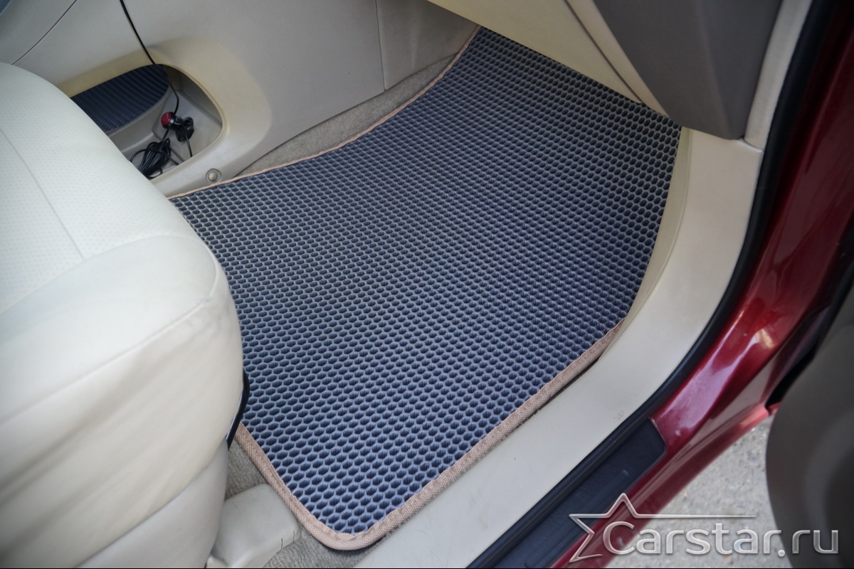Толщина ковриков EVA составляет 10-12 мм. Глубина ячеек 7-8 мм. Такая толщина ковриков позволяет им служить довольно долго, не протираясь до 3 лет. А благодаря такой глубине ячеек коврик EVA площадью 1 кв.м. способен захватить около 3,5 л жидкости, сохраняя в чистоте вашу обувь и обивку салона.