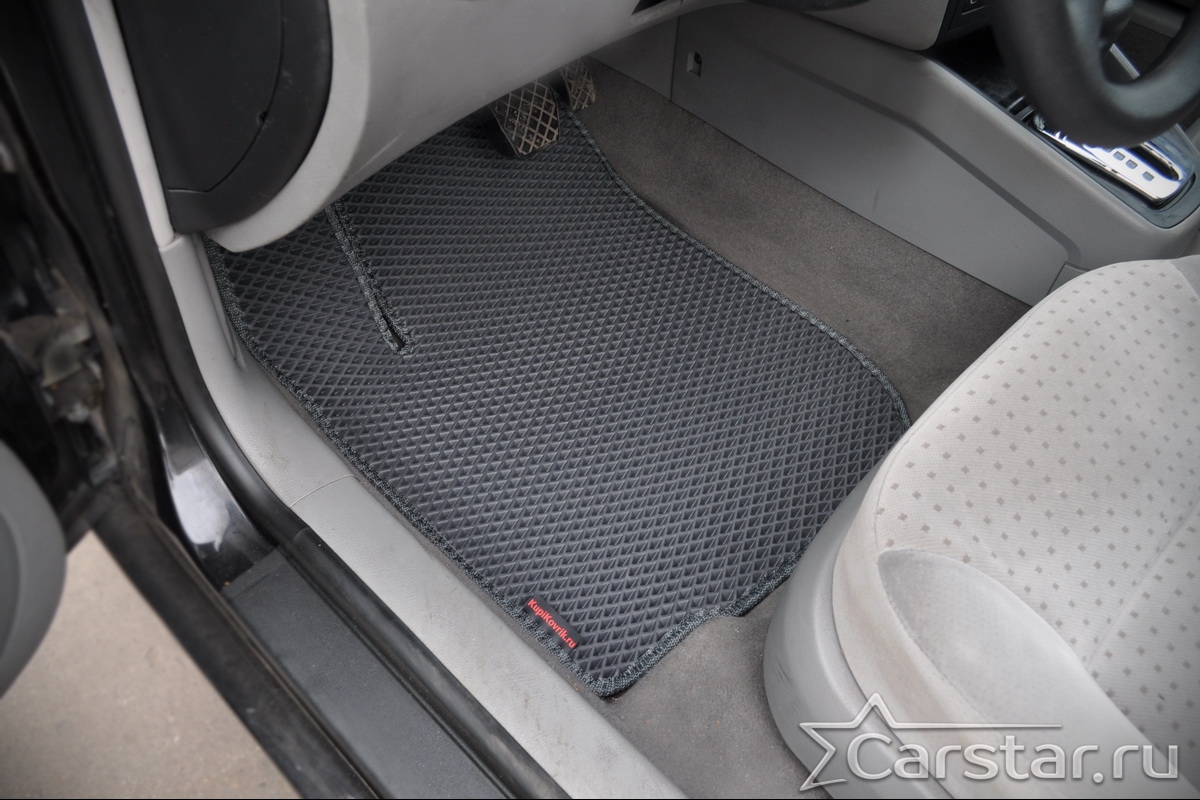 Толщина ковриков EVA составляет 10-12 мм. Глубина ячеек 7-8 мм. Такая толщина ковриков позволяет им служить довольно долго, не протираясь до 3 лет. А благодаря такой глубине ячеек коврик EVA площадью 1 кв.м. способен захватить около 3,5 л жидкости, сохраняя в чистоте вашу обувь и обивку салона.