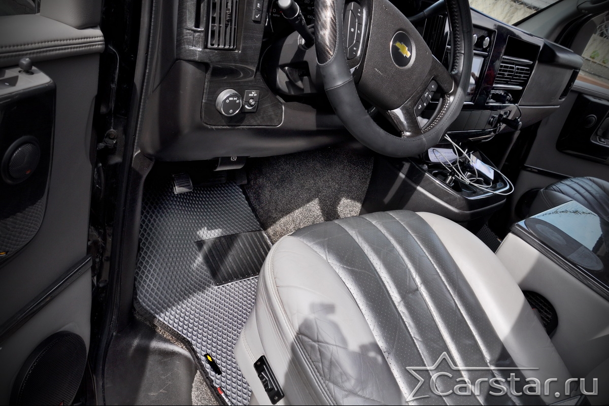 Двухслойные коврики EVA для Chevrolet Express II с консолью (2002->) – это инновационные, долговечные, удобные аксессуары, которые помогут надежно защитить салон и багажник вашего авто от пыли, грязи и влаги в любое время года. Технология двойного слоя - новейшая уникальная разработка от компании Carstar.
