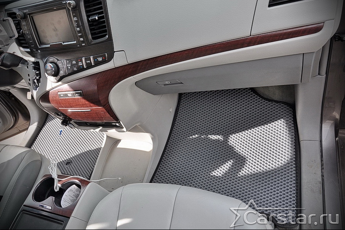 Двухслойные коврики EVA для Toyota Sienna III 6 мест (2010-2020) – это инновационные, долговечные, удобные аксессуары, которые помогут надежно защитить салон и багажник вашего авто от пыли, грязи и влаги в любое время года. Технология двойного слоя - новейшая уникальная разработка от компании Carstar.