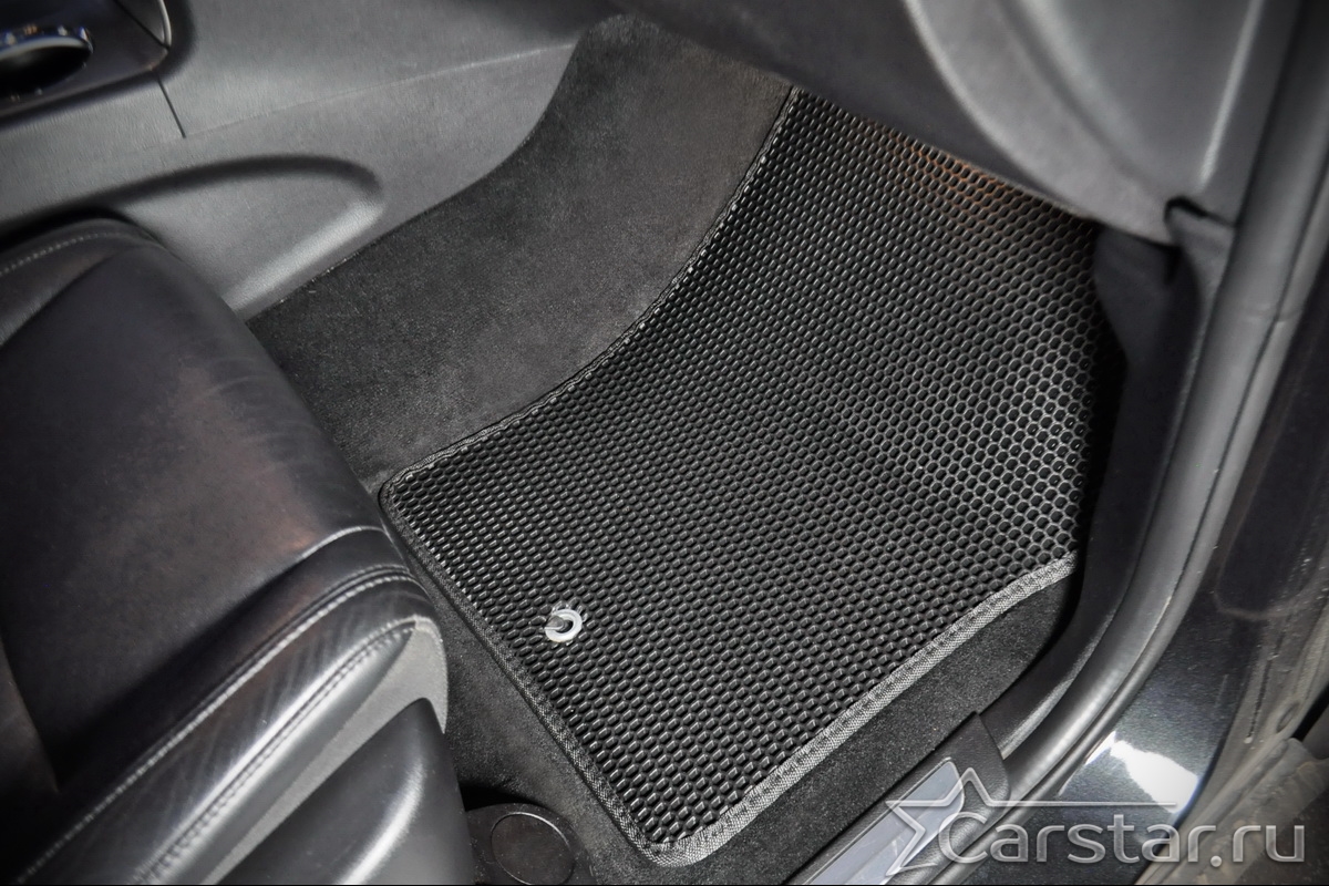 Текстильные коврики надёжно крепятся с помощью оригинальных систем фиксации. Обратная сторона имеет противоскользящее покрытие, что обеспечивает защиту от смещений и безопасность. Максимальное удобство достигается точными лекалами.