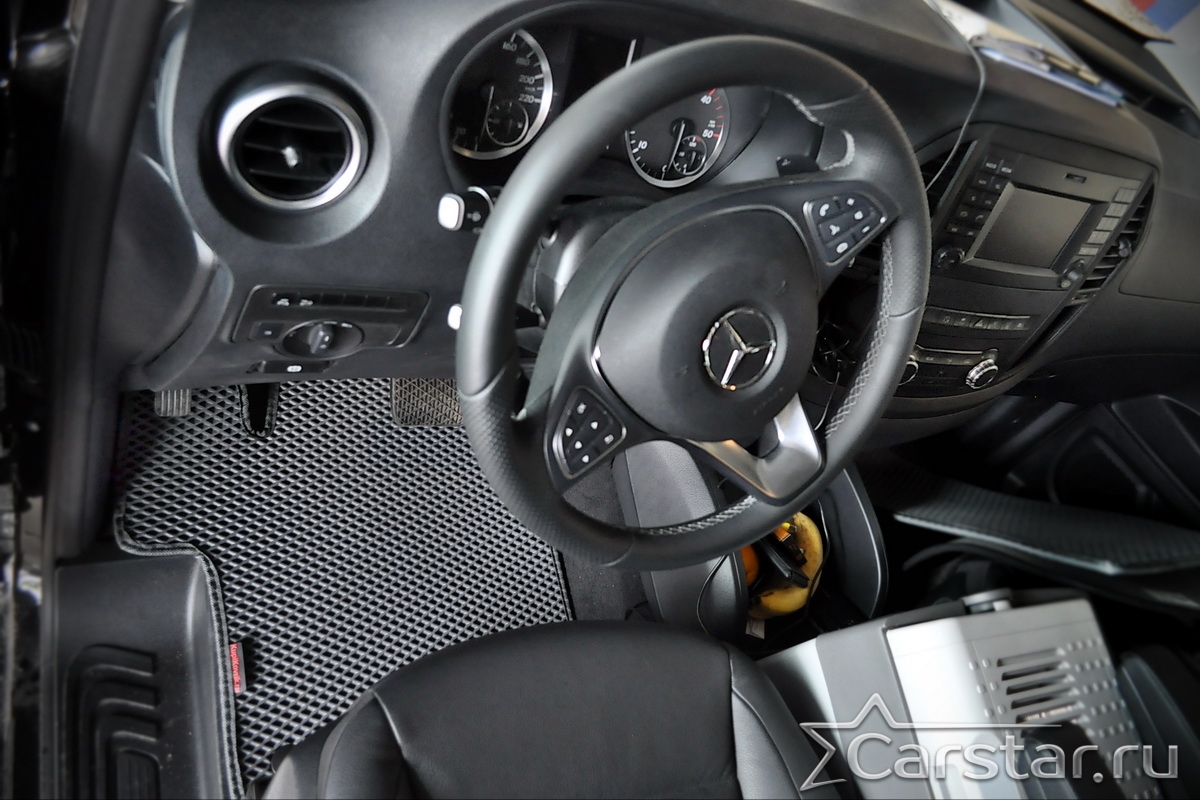 Текстильные автомобильные коврики Mercedez-Benz V-klasse II W447 (2 ряд - 2 места с проходом) (2014->) – это классический аксессуар, который обеспечит салону автомобиля неизменную чистоту, порядок и уют. Компания Carstar предлагает изделия из качественного ковролина в сочетании с полипропиленовым основанием на шипах, такая комбинация делает их прочными и водонепроницаемыми.